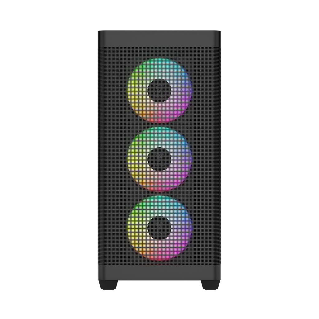 DAHİLİ FAN İLE 4 ARGB PWM FANDört adet dahili sessiz PWM ARGB fana sahip olan kasa, olağanüstü aydınlatma ve minimum gürültüyle ince ayarlı hava akışı sağlar. Dahili 8 portlu PWM ARGB fan göbeği, kolay yönetim ve senkronizasyon sağlayarak, fanların yüksek performanslı ve sessiz çalışmasını mükemmel şekilde tamamlayan uyumlu bir aydınlatma düzeni sağlar.