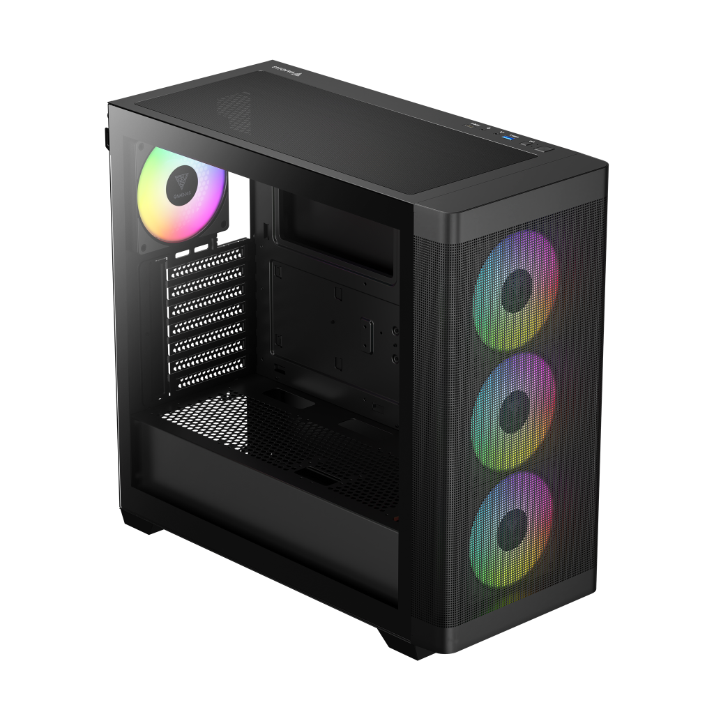DAHİLİ FAN GÖBEĞİ İLE 4 ARGB PWM FANDört adet dahili sessiz PWM ARGB fana sahip olan kasa, olağanüstü aydınlatma ve minimum gürültüyle ince ayarlı hava akışı sağlar. Dahili 8 portlu PWM ARGB fan göbeği, kolay yönetim ve senkronizasyon sağlayarak, fanların yüksek performanslı ve sessiz çalışmasını mükemmel şekilde tamamlayan uyumlu bir aydınlatma düzeni sağlar.