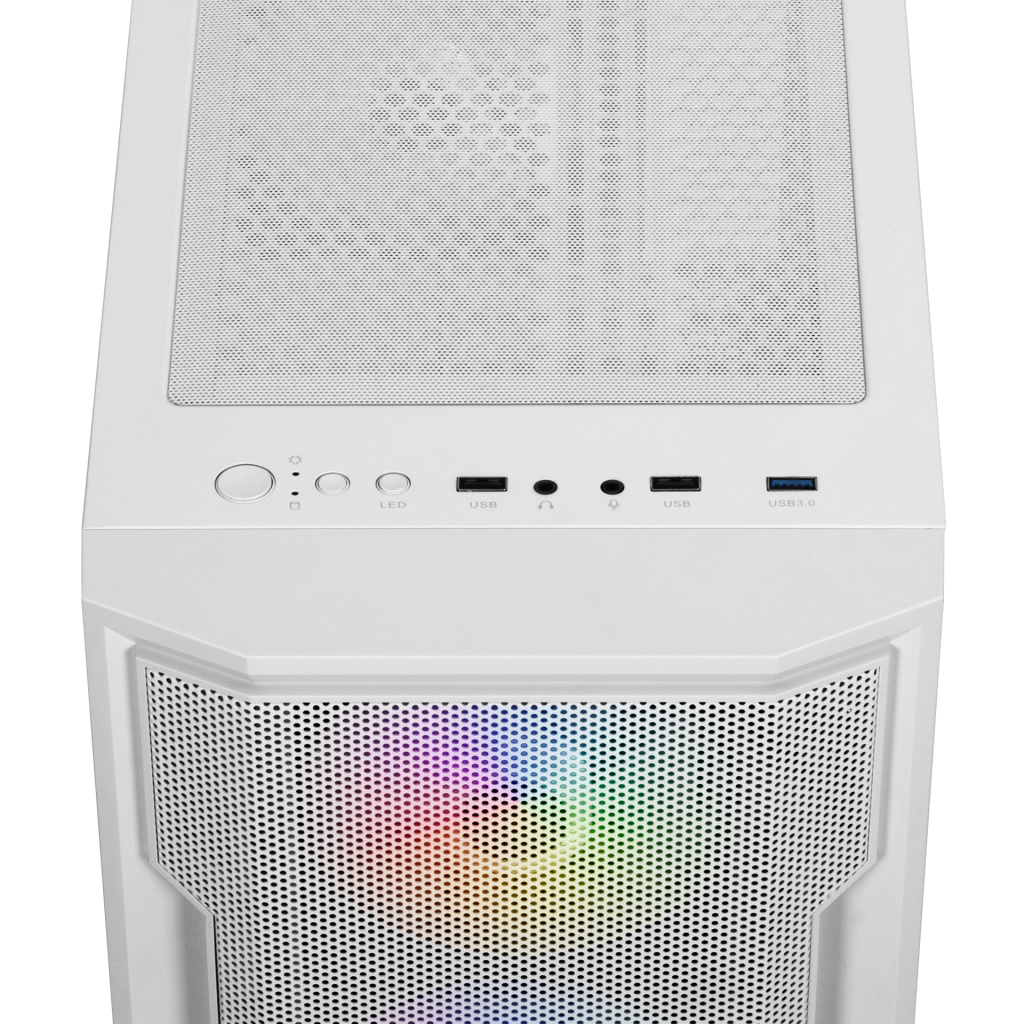GENİŞ MESH PANELATHENA M6 LITE, çepeçevre delikli havalandırma ile uygulanan üç adet 120 mm RGB fan için yeri olan sütun şeklinde bir ağ ön panel ile birlikte gelir. Kasa, yeni nesil soğutma taleplerini karşılamak için sınırsız hava akışına sahip bir ortam yaratmak üzere tasarlandı. | |