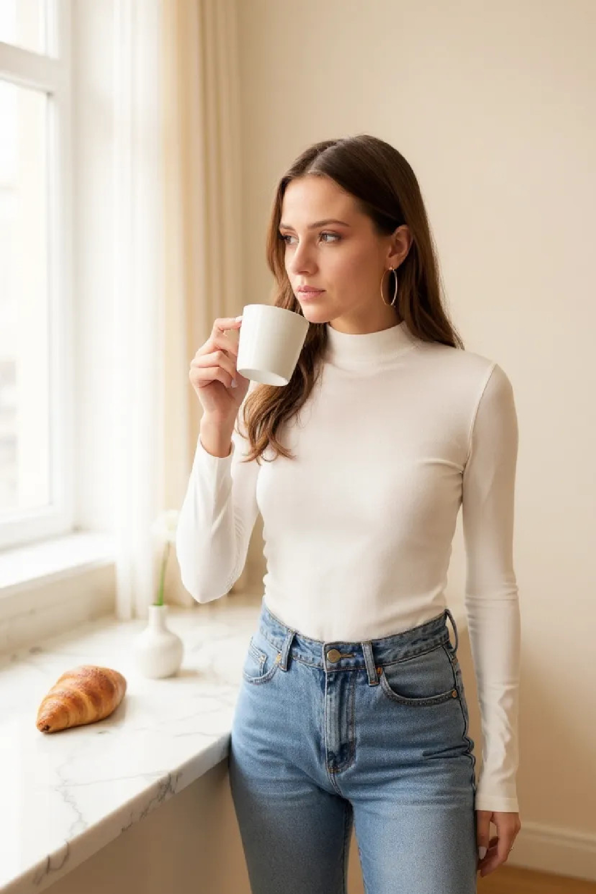 Zarafeti ve sadeliği aynı anda sunan Kadın Beyaz Parmak Detaylı Esnek Uzun Kollu Body, gardırobunuzun en kurtarıcı parçalarından biri olacak. Minimalist tasarımı ve fit kalıbıyla günlük şıklığınızı tamamlar, özel günlerde ise sofistike bir zarafet kazandırır. Esnek kumaş yapısı, gün boyu rahat hareket etmenizi sağlarken vücudu sararak feminen bir görünüm sunar. Parmak detaylı uzun kollu body, beyaz rengin saf ve zamansız havasıyla birleşerek çok yönlü kullanım avantajı sağlar. Dört mevsim rahatlıkla kullanılabilir. Öne Çıkan Özellikler Renk: Beyaz (zamansız ve minimalist) Parmak detaylı uzun kollu tasarım Esnek, yumuşak kumaş Fit kalıp, vücuda oturan şık kesim Günlük, ofis ve özel davetlerde kullanım için ideal Basic body kategorisinin en çok tercih edilen parçası Kombin Önerileri Günlük Şıklık: Jean ve sneaker ile temiz ve spor bir görünüm Gece Kombini: Siyah etek ve topuklularla klasik beyaz-siyah şıklığı Ofis Stili: Takım elbise altına giyilerek profesyonel bir duruş Sokak Modası: Salaş pantolon veya şortla casual bir hava Yıkama & Bakım Talimatı 30°C’de hassas yıkama önerilir Çamaşır suyu kullanılmamalıdır Düşük ısıda tersten ütülenmelidir Sererek kurutma tavsiye edilir Bu kadın beyaz uzun kollu body, her stile uyum sağlayan kurtarıcı bir parça olacak. Hem sade kombinlerde hem de şık davetlerde zarafetiyle sizi öne çıkarır.]]>