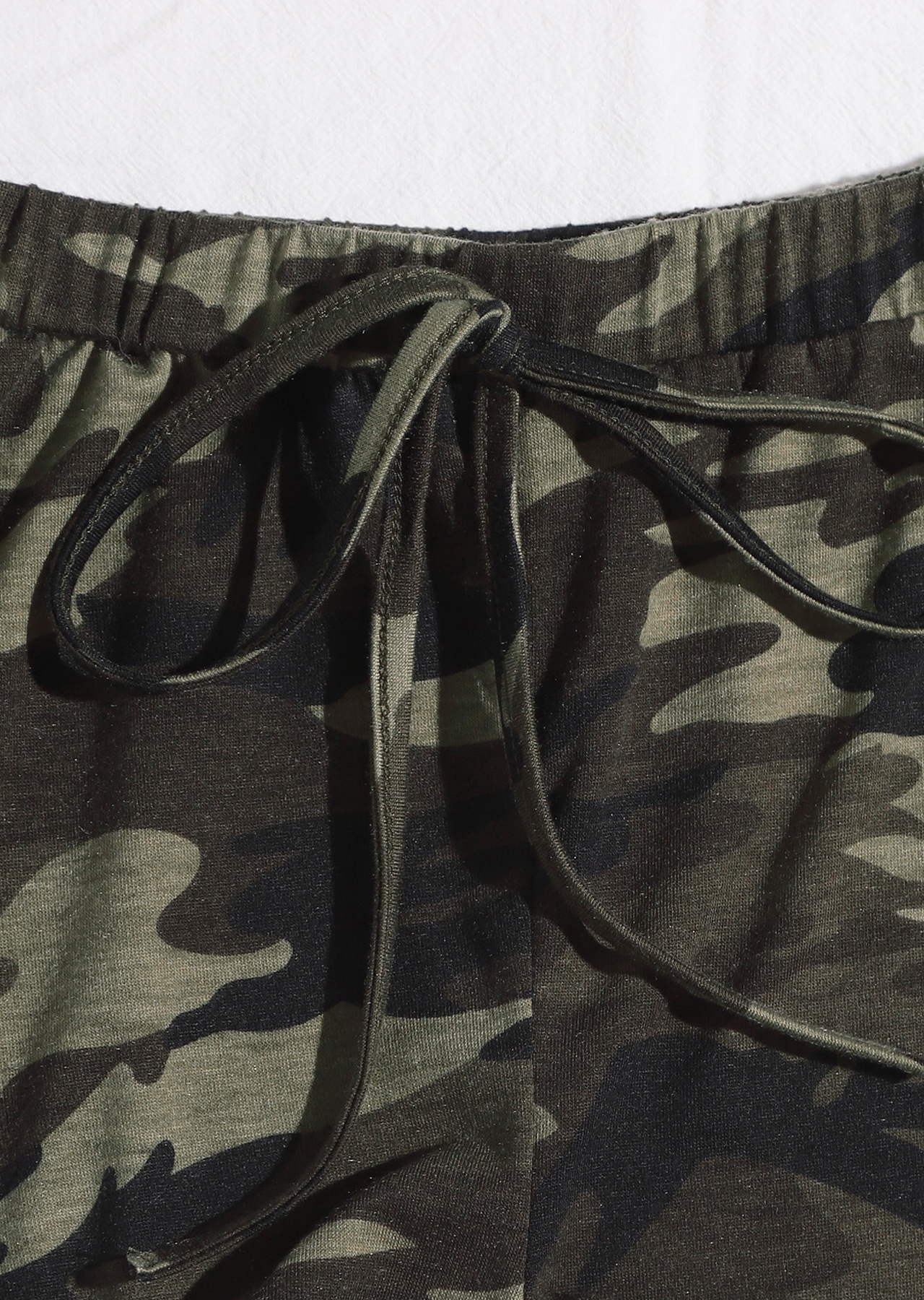 - Askılı Crop ve Şortlu Kamuflaj Desenli Gecelik Takım
