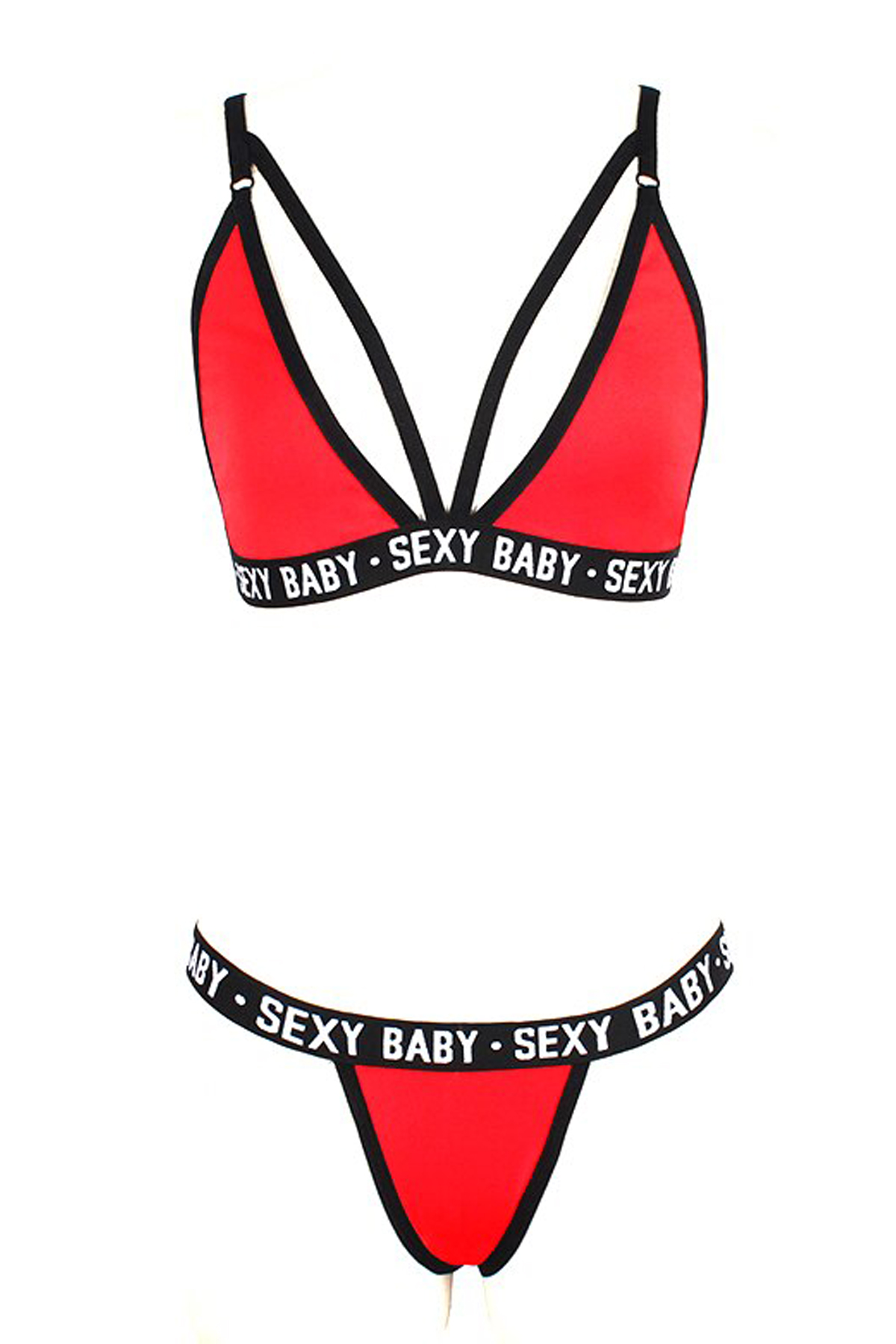 Kadın Kırmızı Yazı Detaylı Ipli Sütyen Takımı – Modern, Konforlu ve Günlük Kombinlere Uygun