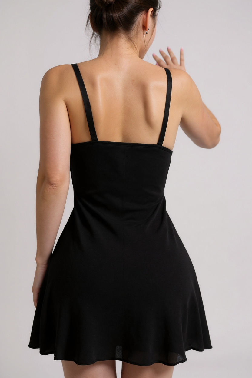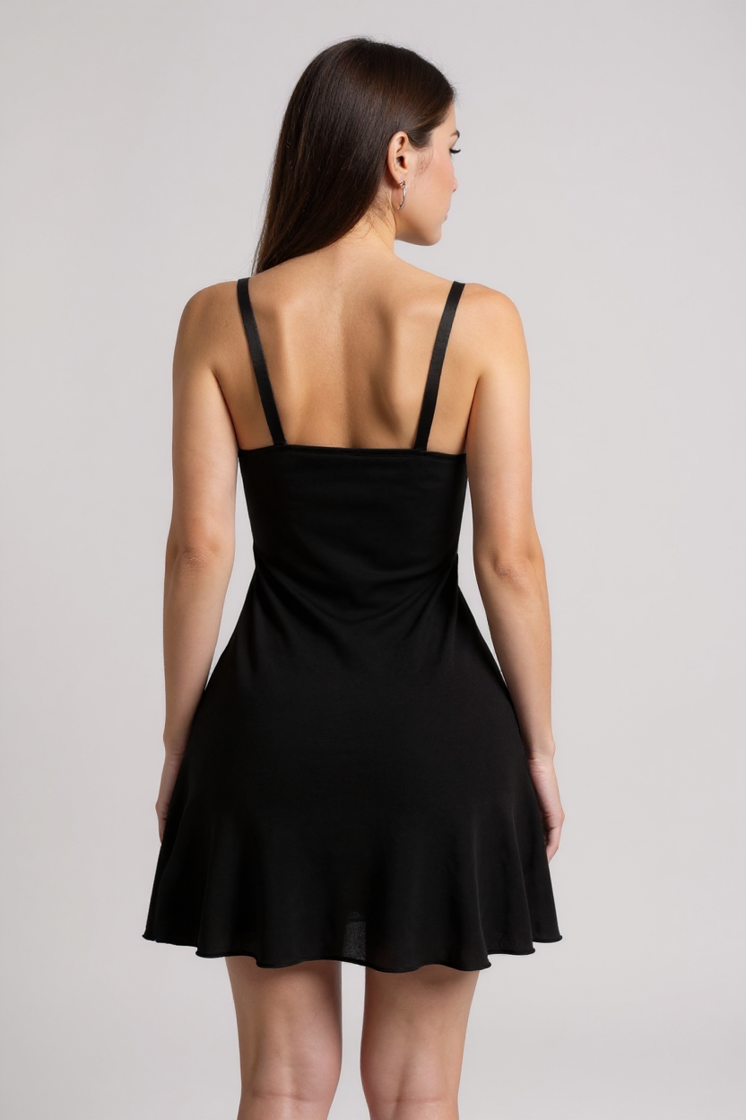 - Siyah Beli Dantelli Göğsü Fiyonklu Şık Gecelik