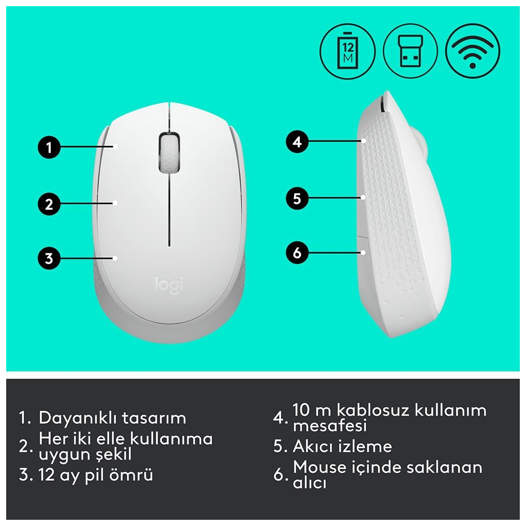 LOGITECH M171 KABLOSUZ MOUSE-BEYAZ