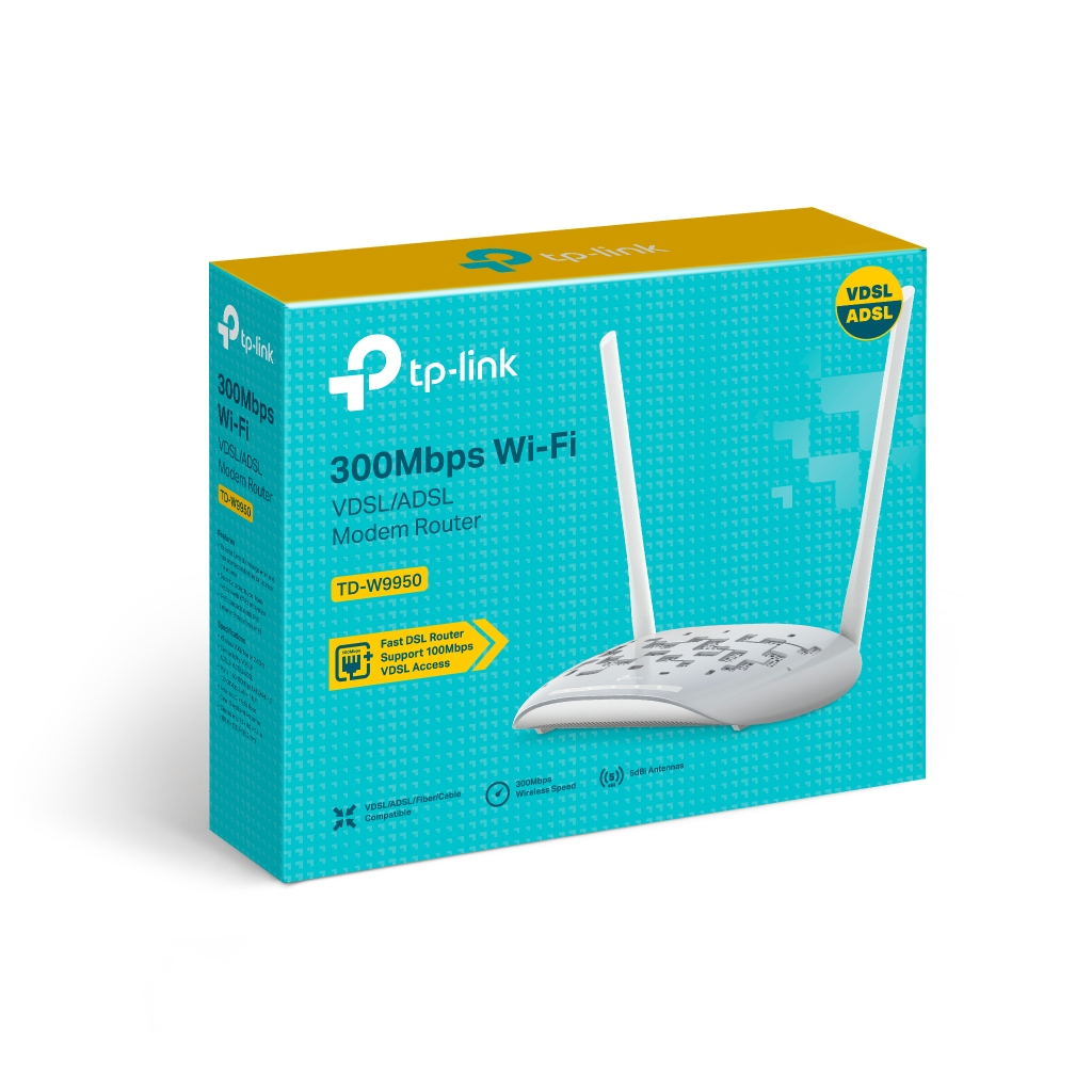TP-LINK TD-W9950, 4 Port, 2.4Ghz Wifi, 300Mbps, 2xAnten, VDSL2, ADSL2 MODEM